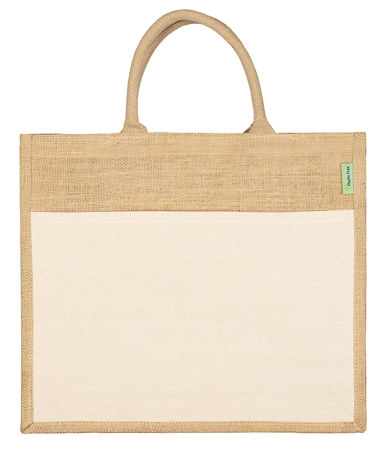 Jute shopper bedrukken plasticvrij naturel canvas voorvak L