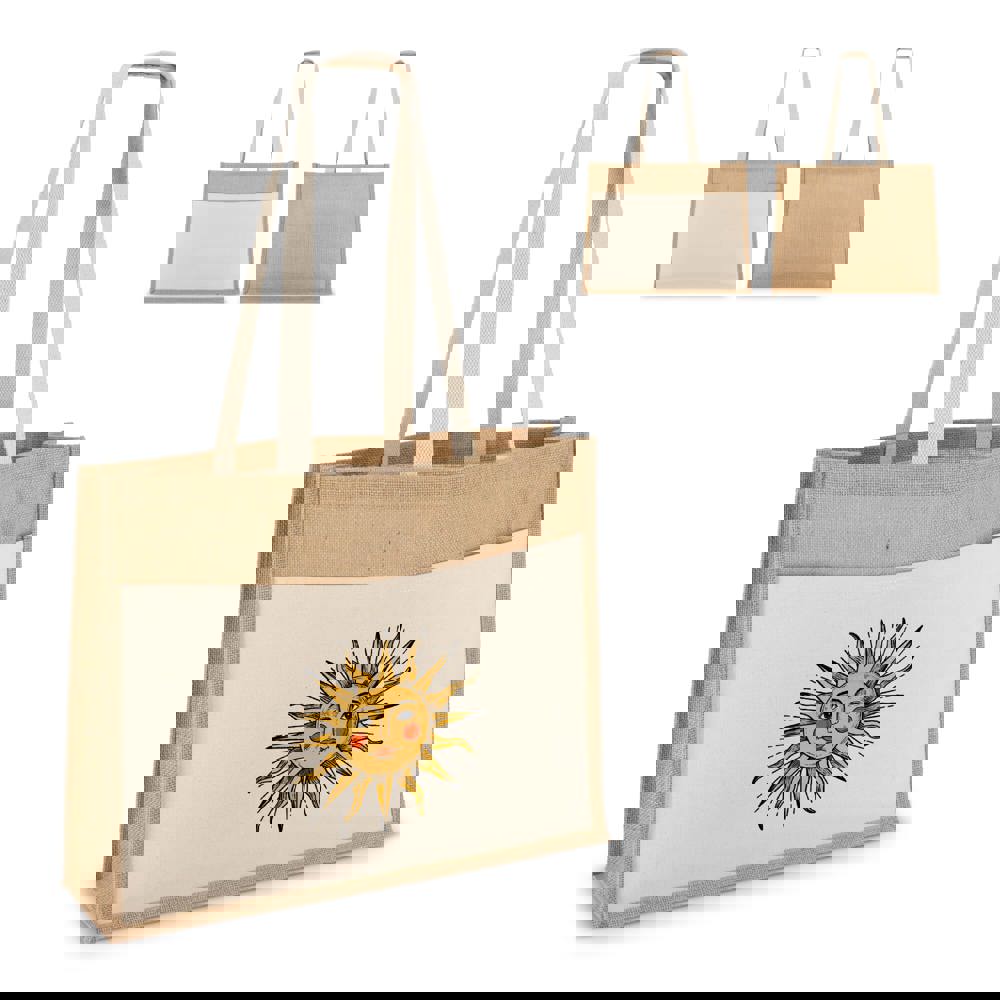 Jute tote bag bedrukken OEKO-TEX met voorvak 45x12x35cm
