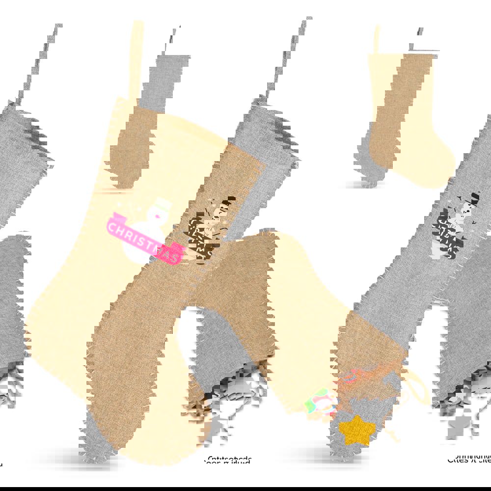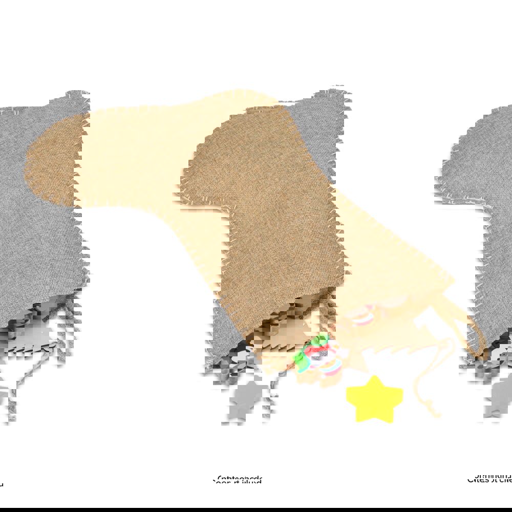 Jute kerstsok bedrukken decoratieve stiksels natuur 40 cm