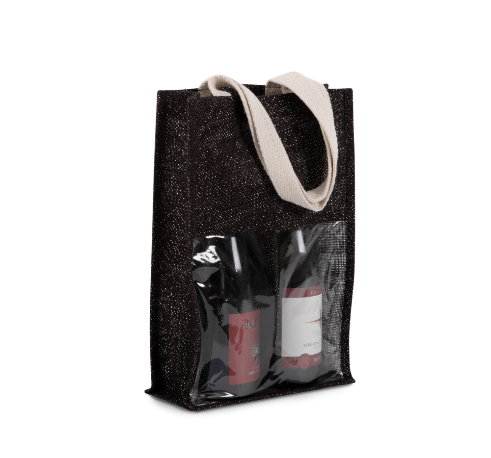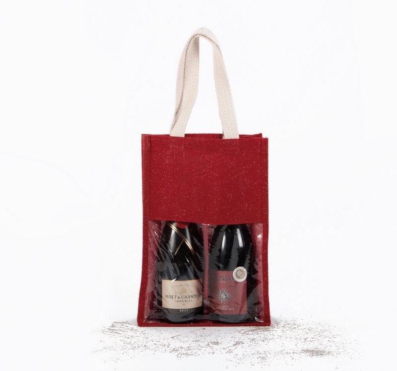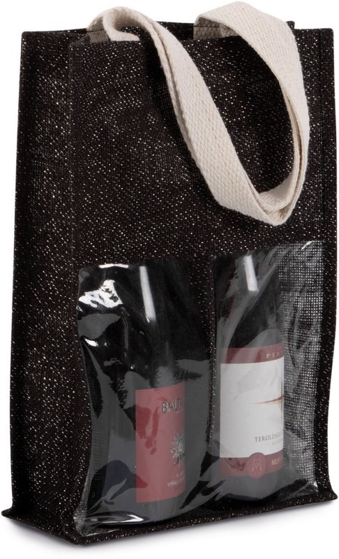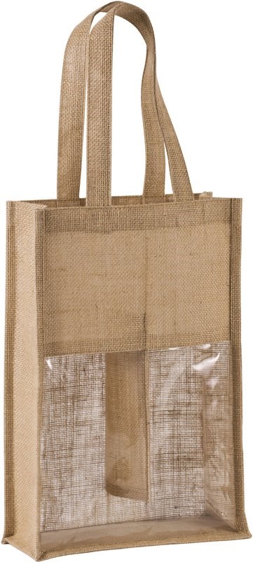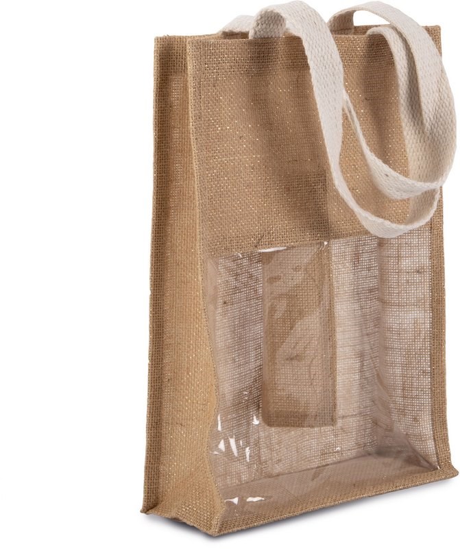Flessentas van jute bedrukken 2 flessen met venster One-size