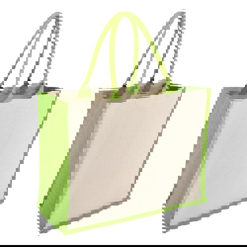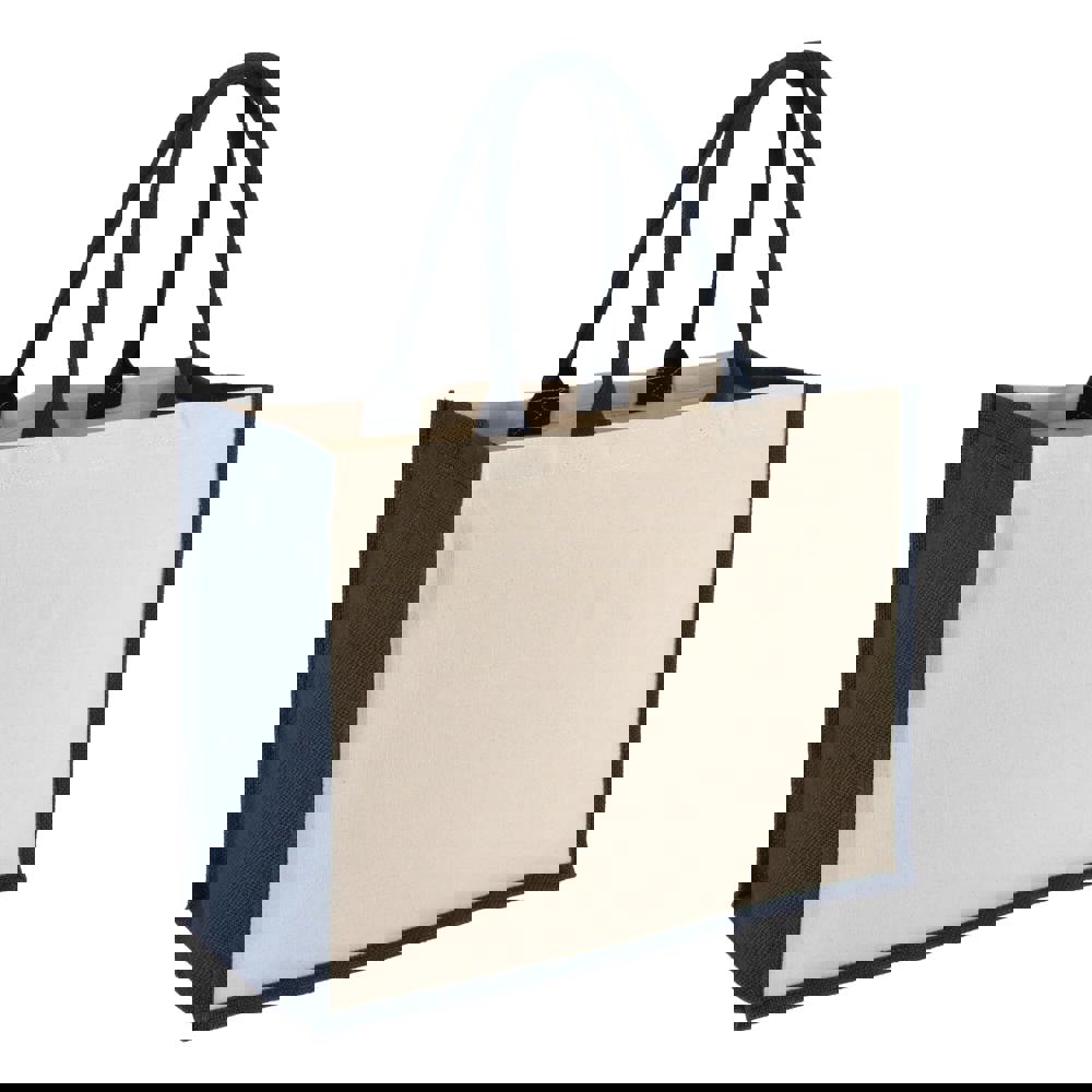 Deze luxe shopper met jute zijpanelen biedt volop ruimte voor al je dagelijkse benodigdheden & boodschappen. Dankzij de stevige materiaalmix en het OEKO-TEX certificaat kies je voor een bewuste tas. Laat deze eco tassen bedrukken met je logo voor een sterke indruk op elk evenement.