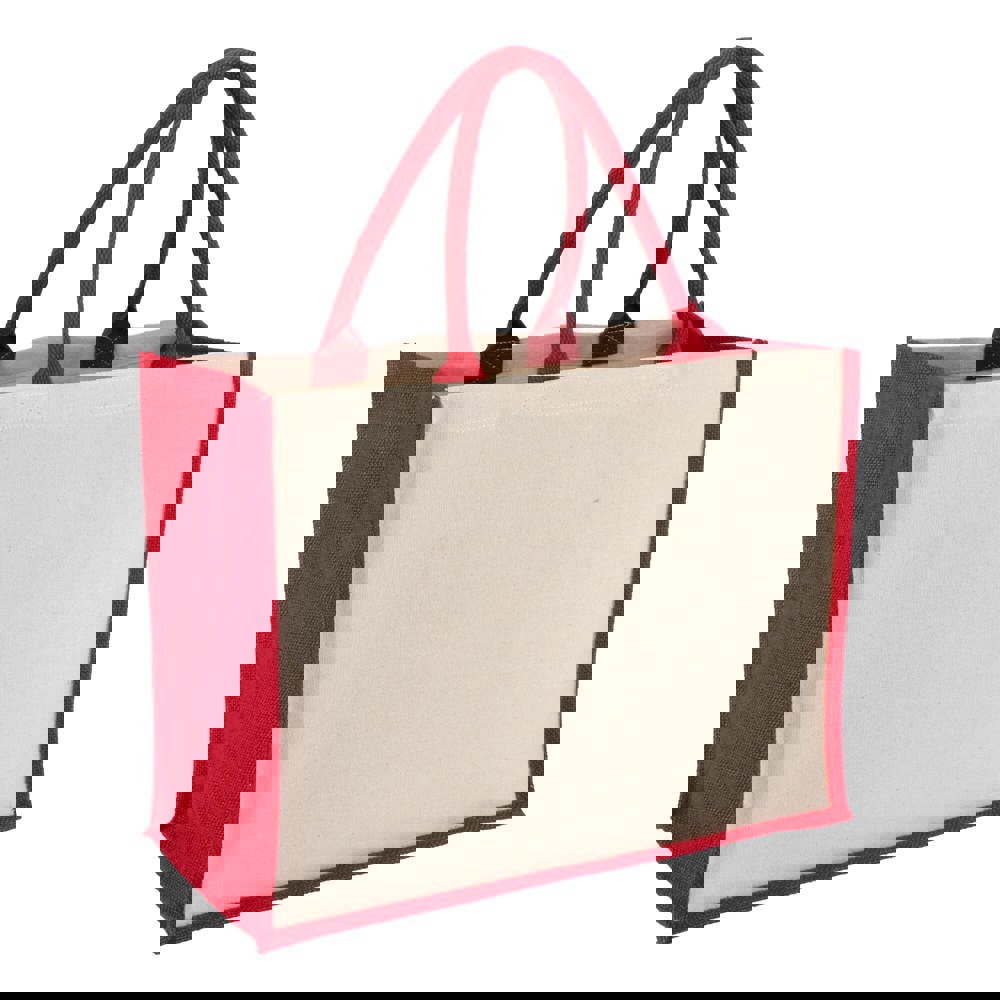 De Jute-Katoen Tote is een stevige tas met een OEKO-TEX® certificering. De tas heeft een afmeting van 42,5 x 19 x 32 centimeter. Het materiaal heeft een gewicht van 320 g/m². De voorpanelen en achterpanelen zijn gemaakt van katoenen canvas. De zijpanelen en de bodem bestaan uit duurzaam jute. De tas is voorzien van katoenen handvatten in een accentkleur. Je kunt dit product laten bedrukken met een eigen logo.