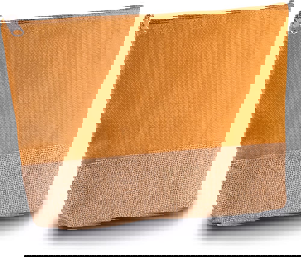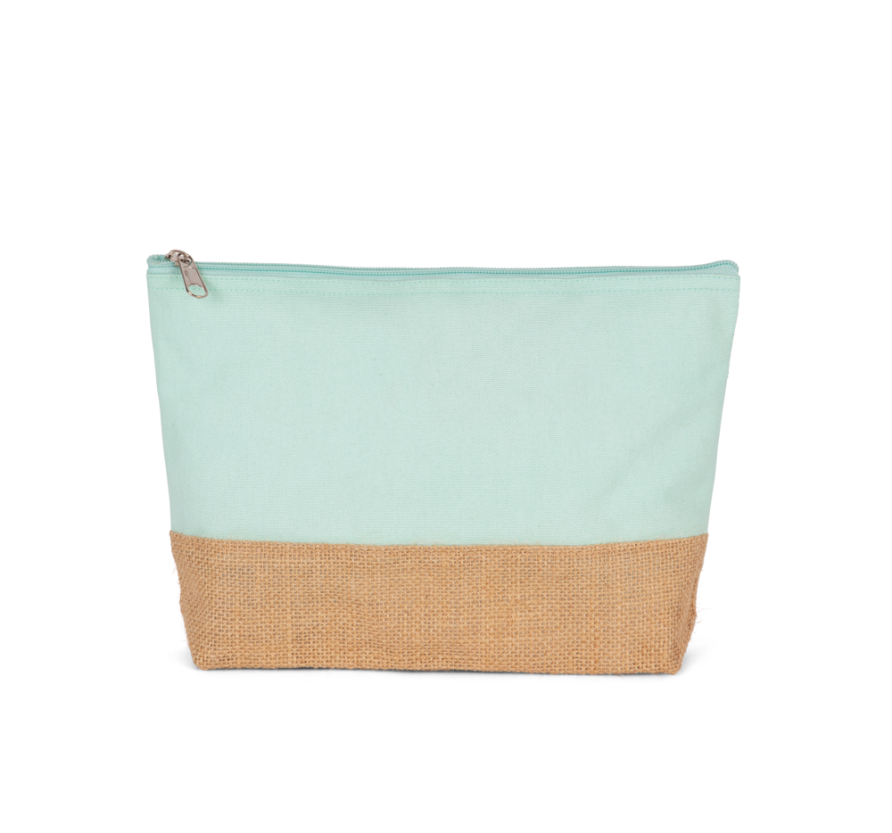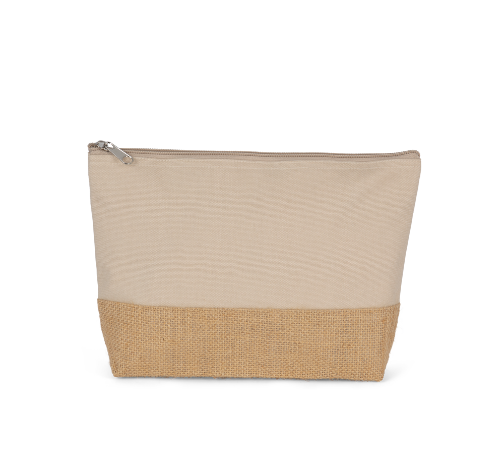 Dit zakje van katoencanvas en jute is een praktische verpakking voor kleine artikelen. Het product heeft een bovenzijde van soepel katoencanvas. De onderzijde is gemaakt van natuurlijk en gelamineerd jute. Dit zorgt voor een stevige basis en een contrastrijk uiterlijk. Je kunt dit zakje laten bedrukken met een eigen logo voor een professionele presentatie.